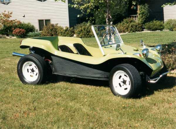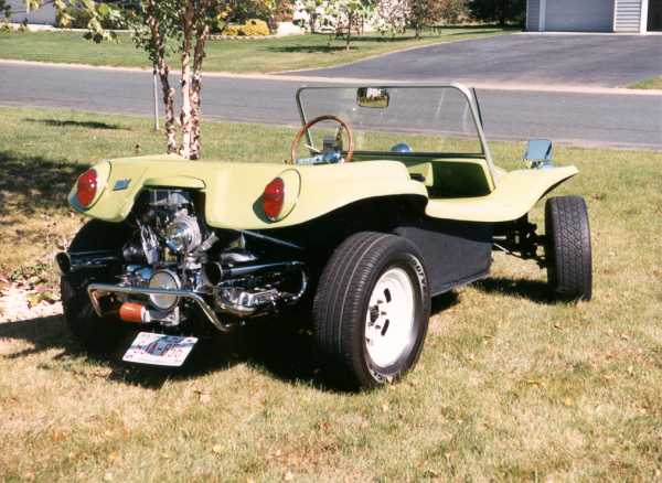 Above are 3 photos of "my" 1970 Manx 2. I purchased it a little over two years ago and went through the motor this last winter. I still call it "my" Manx even though it was sold late this fall to Jeff & Gina Wagner of Pewaukee, WI. When I found it, it was in pretty tough shape - but still was "driveable." I just cleaned it up a bit (the body is still the original Lime Green gelcoat) and repaired most of the really worn or damaged items. I left the motor basically stock, but installed a counterweighted crank and 009 distributor along with many chromed parts. It is NO show Manx but it sure got a lot of attention around where I live in Wisconsin. What a blast to drive !!