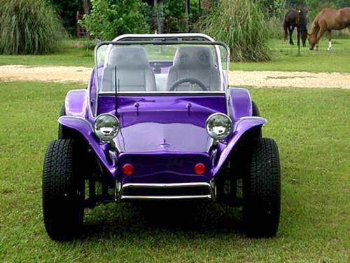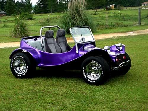 It has a stock 70 model 1600 engine with an alternator, pontaic ferio seats with have speakers in the head rest for the stereo. The wheels are standard chrome spoke, 15X10 and P275/60 on the rear 15x7 and P235/70'S on the front.. It sets on a 67 chassis with has been shortend 13 1/2" .The paint is a pearl purple.