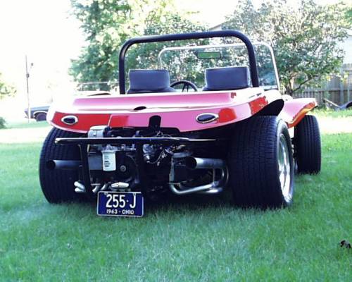 It's power comes from a '62 Corvair engine. The paint is PPG Concept urethane 1999 Hugger Orange. I am not sure but I believe the body is a Sand Shark. If anyone has any information on this body, has any questions or just wants to talk buggies, feel free to e-mail me.