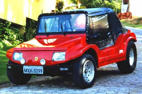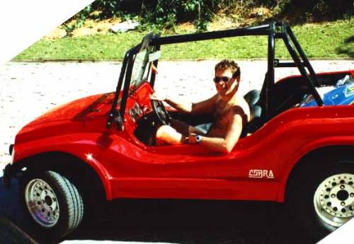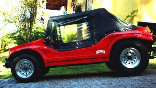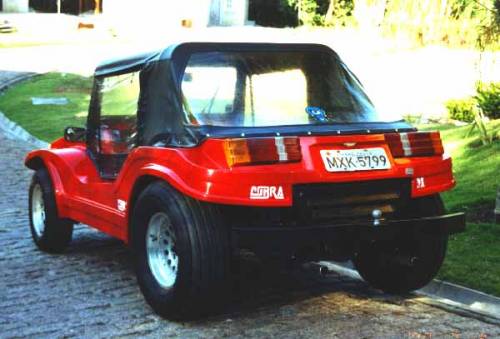 My name is Roger Moreira, I live in São Paulo, Brazil, but the buggy is at my beach house in Guarujá, near São Paulo. It was made in Brazil in 1993 by Cobra, it has a 1973 1600 cc VW engine and it's painted bright red with pearl finish. It has a trunk in the front roomy enough for a spare tyre. It works like new. I'm not much of an expert so that's about all I can say about it.