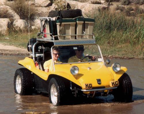 I wanted a roof rack that would be strong and not too heavy. When you pile on 5 extra gallons of gasoline, 5 gallons of water, an ice chest, food and miscellaneous camping gear the weight on top can approach 250 lbs. When the going gets rough, you don't want any movement in the rack or it will cause problems at the mounting points. I also wanted a rack that looked nice, was easy to install and remove, and did not require any holes to be drilled in my recently restored buggy.