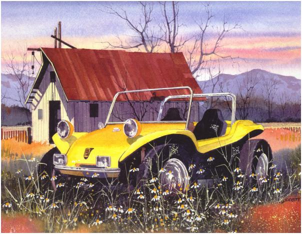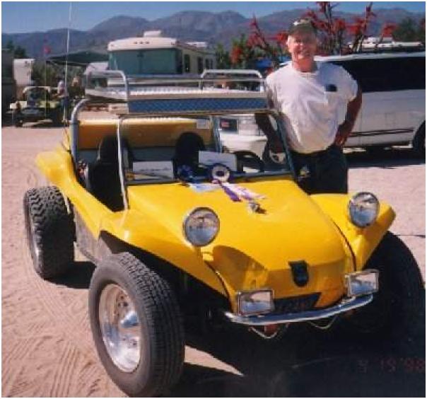 The car's name is "New Yeller" because my previous Manx type buggy which I built in 1966 was named "Old Yeller". I seem to have a pre-occupation with yellow cars as I also belong to the Y.B.D.B Club (Yellow Baja and Dune Buggies). To be a member of the Y.B.D.B. Club you must have a yellow car or be willing to paint it yellow "real soon".