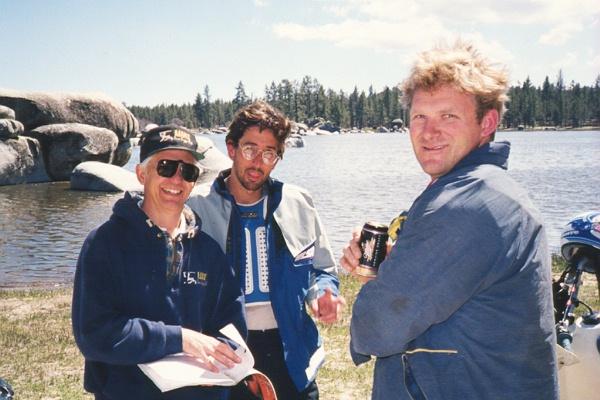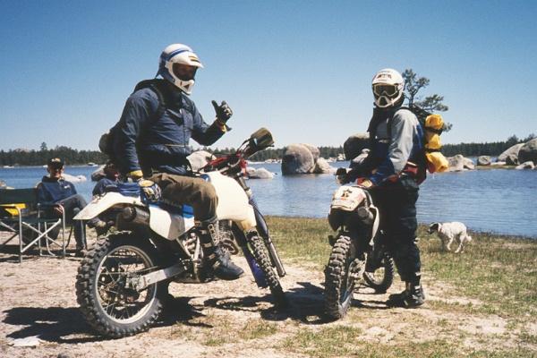 The first two photos are of a couple of bike riders (one a school teacher) from Santa Ana California we met on Day #1 over lunch at Laguna Hansen...a perfect day for off-roading They were scouting for an upcoming motorcycle event, and being out of beer, we provided them with a couple of brews...and a copy of our topographical maps of Baja. The third photo is of the multilingual fellow (Coco) who lives at Coco's Corner in a tiny trailer, and reportedly speaks seven languages. The last photo is of two U.C. San Diego undergraduates (Biology majors?) we met in a campground in the Bay of L.A. They were taking it easy between quarters. Unlike us, they were nice, quiet campers who went to bed early. We, on the other hand, had to celebrate someone's birthday...in the bar, so we didn't pitch our tents until well after dark!